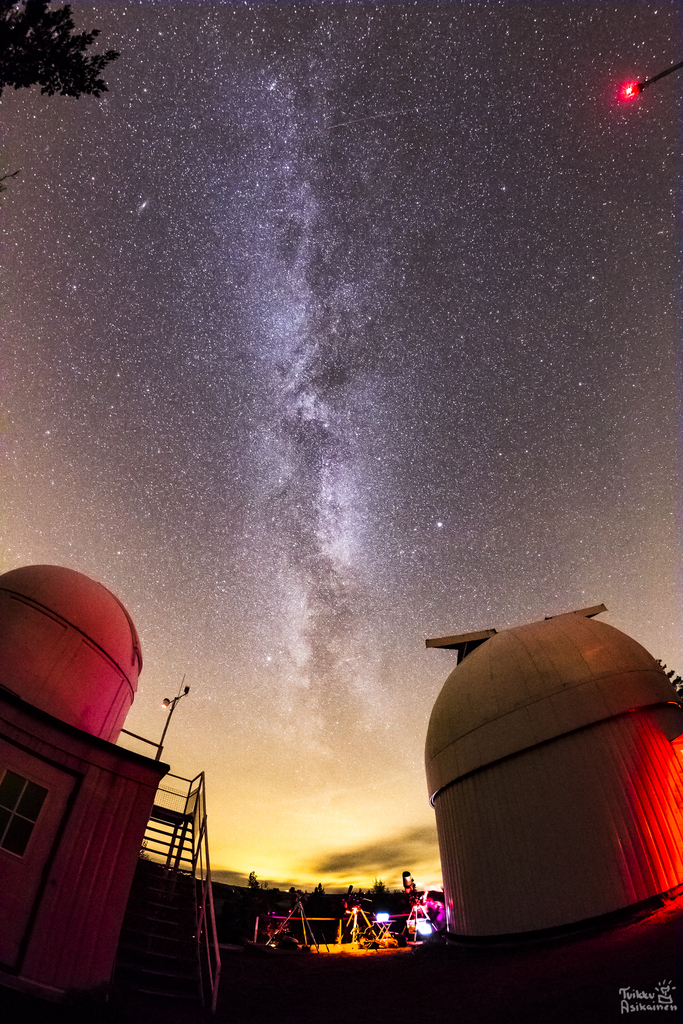 Sää suosi osallistujia ja paikan päällä ihmeteltiin mm. paljain silminkin näkyvää Andromedan galaksia. Otimme myös SQM-mittauksia (Sky Quality Meter) ja lukemat olivat hulppeat 21, 46! Eli taustataivas oli todellakin pimeä ja hyvälaatuinen.